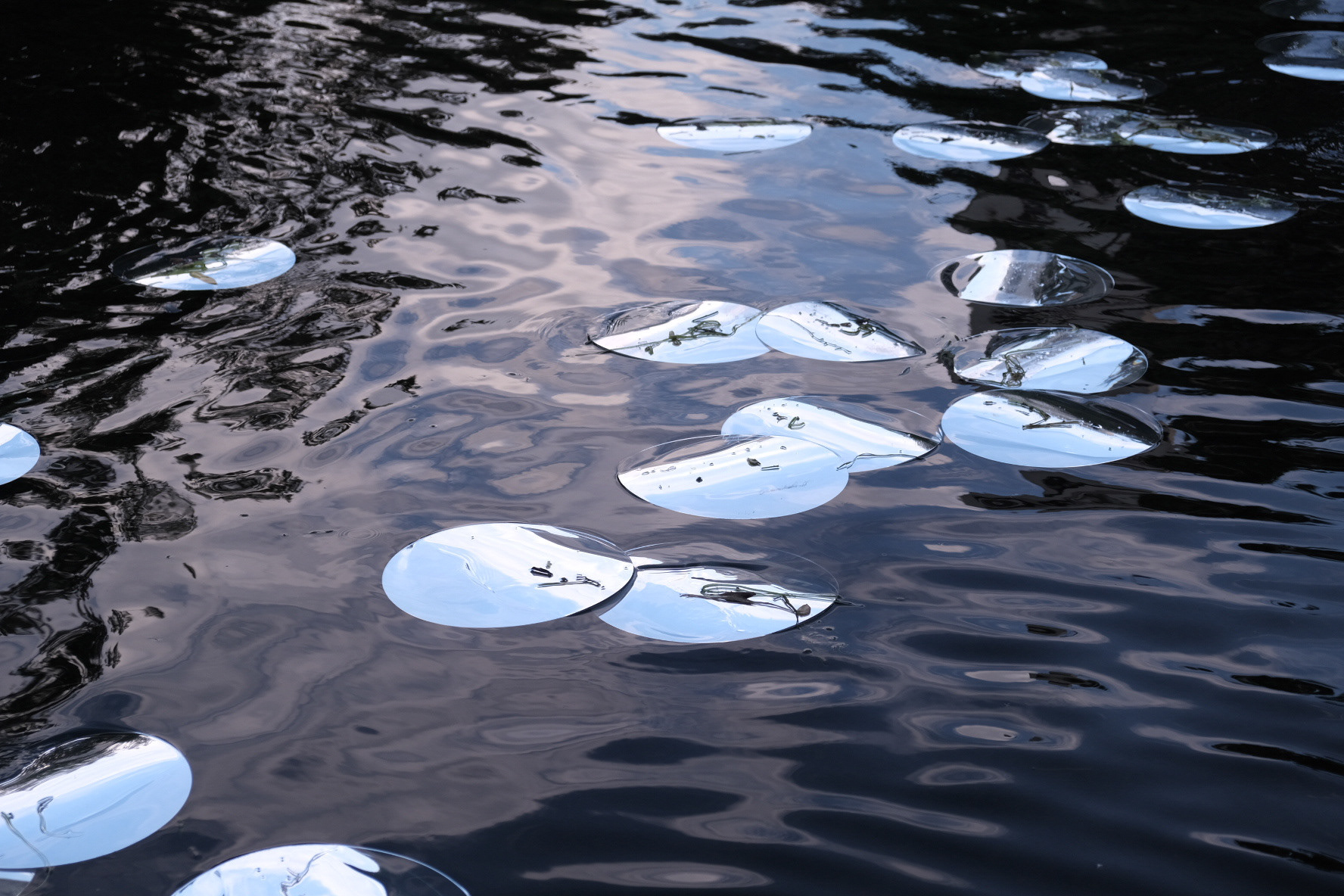 Mirrored acrylic, concrete, EVA foam, silicone, fishing trace